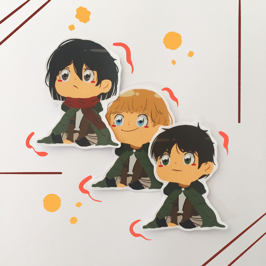 5 out of 5 stars 34 34 reviews 5 00. None attack on titan demon slayer future diary hunter x hunter pick up girls. Vash the stampede chibi. Attack on titan stickers eren armin and mikasa manga season 4 shingeki no kyojin laminated vinyl stickers ema trio studiotate.
